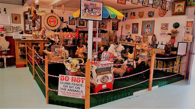 The museum was started by Dr. Harold Sims, who is retired. He is also known as the “Cat Man”. He has dedicated his time and extensive collection of cat artifacts to honor the much loved house cat. And at the same time, his museum helps support his no-kill shelter.