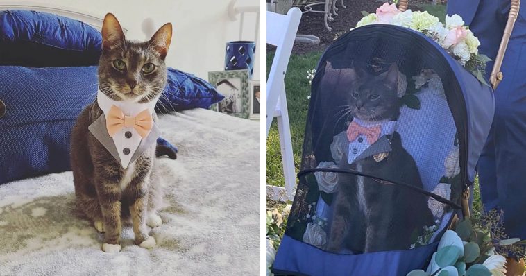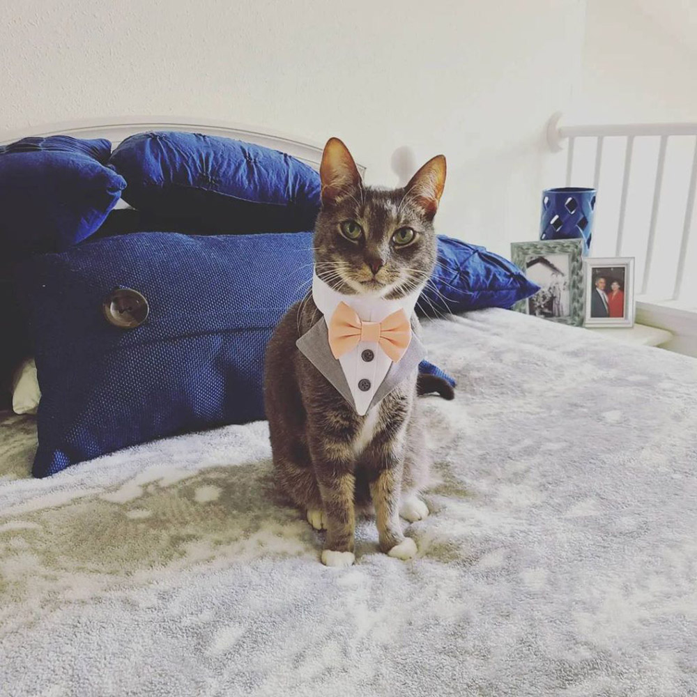 Bride and Groom, Dee and Nick didn’t want to leave their pet cat Moose at home, so decided to include him in the ceremony.