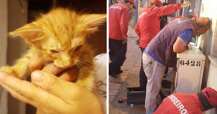 “One of the fireman was so upset for the cat’s state, behing so still for so long, with such a hot weather, that he tried to give it water. And it did drink! We were so happy when this happened. Still, we didn’t know how to take it out.”