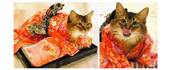 In Japan, the latest rage is to dress your kitty with kimonos. Owners across the country are investing in the finest tiny kimonos for their little felines. And, the cats are posing with pride in these beautiful kimonos. Needless to say this is culture and cuteness at their highest peak.