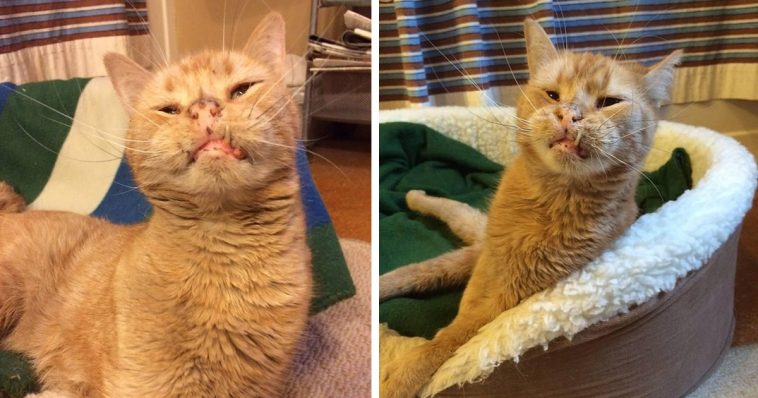 “Herman is a sweet and happy orange tabby with Cerebellar Hypoplasia, or CH,” Milo’s Sanctuary stated. “CH is a neurological condition that affects motor coordination. Herman also has a deformed jaw, which accounts for his famous ‘toof’ that juts out on the lower-left side of his mouth. He may also be partially blind.”
