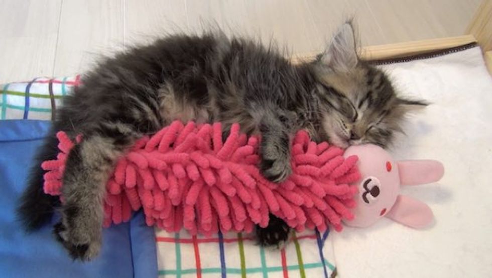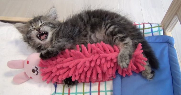 He’s an absolute delight to watch as he chats away and falls asleep cuddling his bunny. A cat hugging their favorite toy is just irresistibly adorable don’t you think?