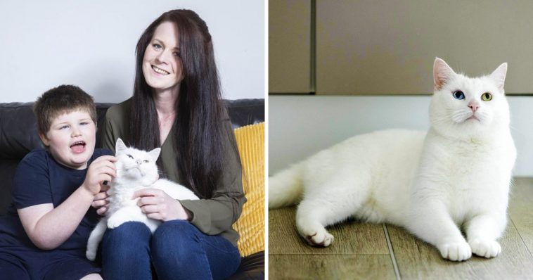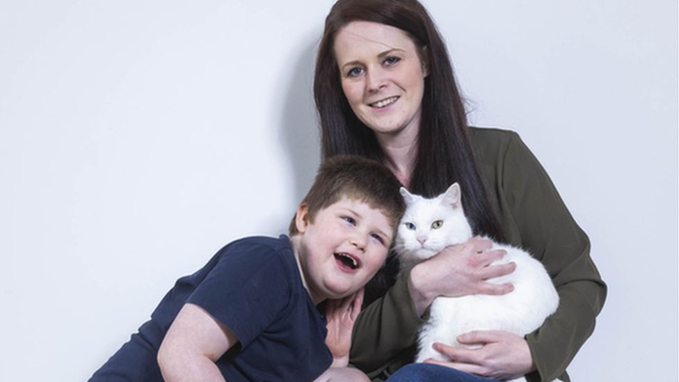 The cat, who lost a leg in a road accident, helps Connor cope with daily life, from keeping him settled at meal times to providing a calming presence at bedtime.