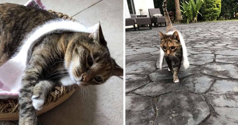 Winter is a special time of the year where we can think of some crazy outfits. Most of these include a scarf which is essential ‘equipment’ for the cold winter days. We don’t know about you, but we love wearing scarves. Apparently, pets love it too, especially a 17-year old cat named Cinnamon. She wears her scarf anywhere she goes, probably because it was knitted with love by her mom.
