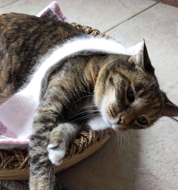 The cat certainly didn’t mind. Cinnamon fell in love with the scarf, and now she wears it all the time. She feels pretty comfortable and warm in it, and even wears it when sleeping. Her mom says that she probably loves it because she never had such a gift before. She had toys, but never a warm scarf.