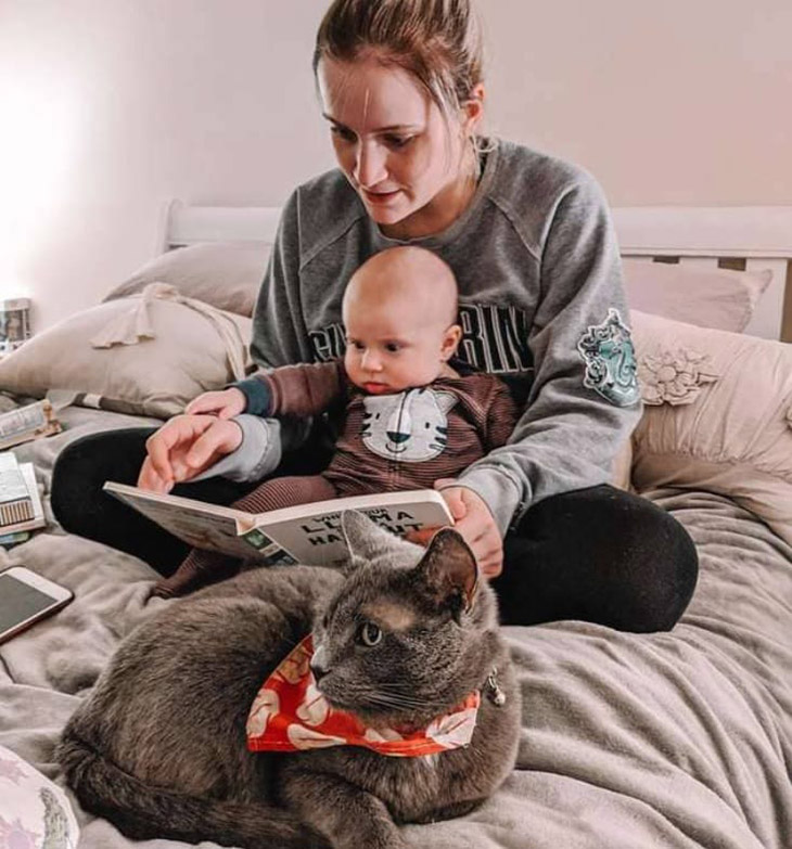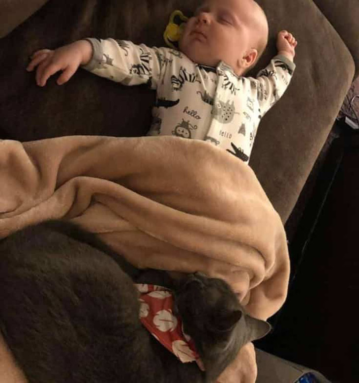 Grace was rescued by Jeannie Seiler-Lederer. She was always a cute and friendly cat, but not a cuddler. You could say that Grace was as cold as any other cat. However, all of that changed when Jeannie gave birth to her first child.