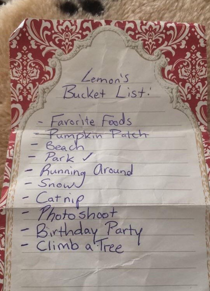 “His quality of life is not being affected by his heart right now. After understanding Lemon wouldn’t live a long life, I decided to create a bucket list for him so that way he can live the rest of his few months happy,” said Bryanna