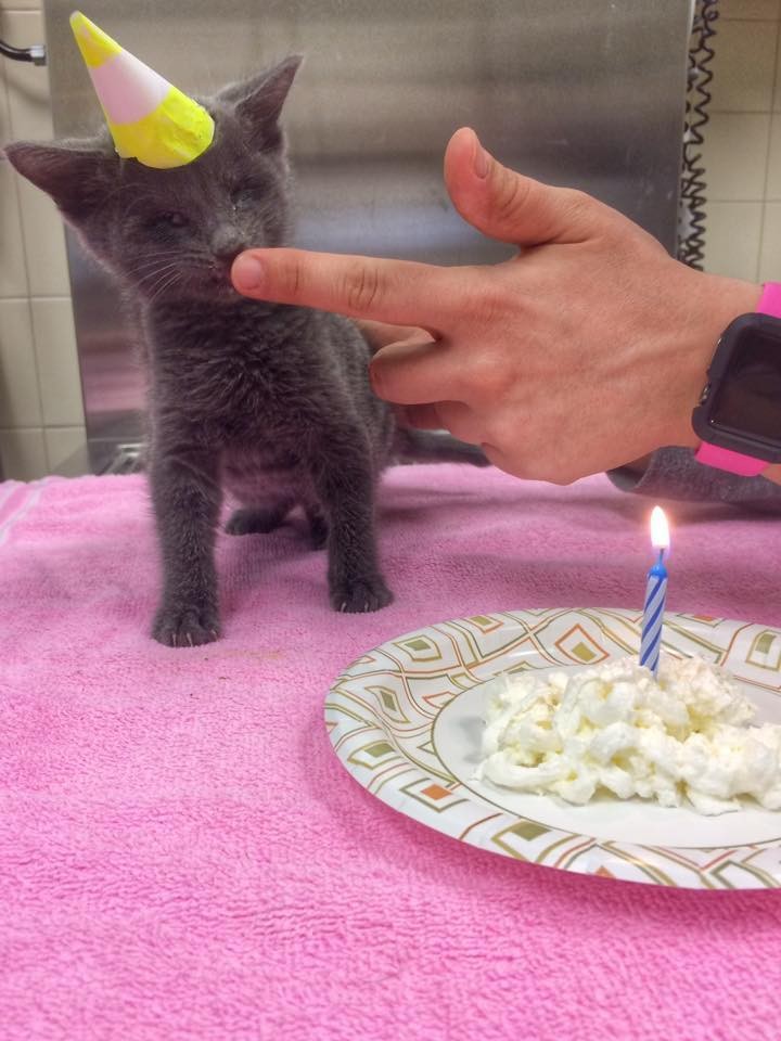 When good Samaritan saw a tiny, sick kitten struggling in the middle of the road, he scooped him up and immediately took him to the nearest animal hospital. A staffer at Coral Springs Animal Hospital in Florida quickly realized that the 2-month-old kitten’s prognosis wasn’t good, and decided to adopt him herself — with the help of her coworkers.