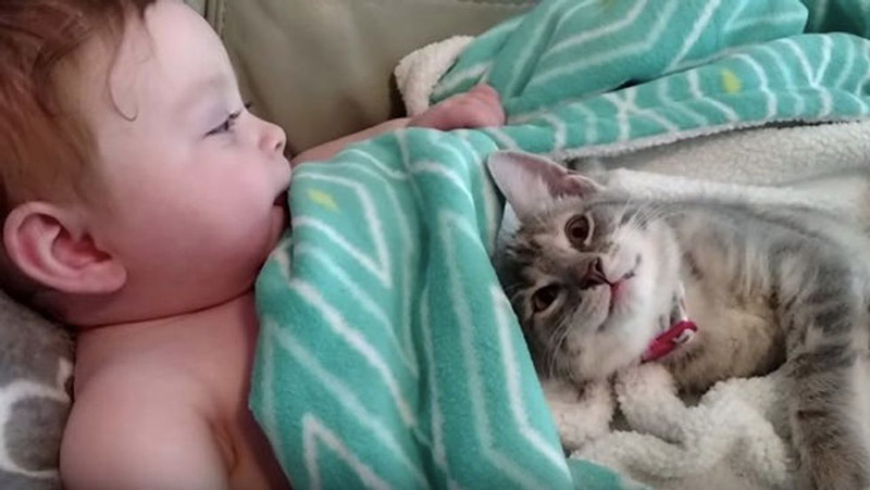 “My 8 month old daughter and her new kitten, Eevee fell asleep together. This is them waking up. Yea, its the cutest ever,” said Jenny.