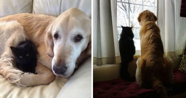 Although we consider them mortal enemies, some cats and dogs are actually friends. Such is the case of Forsberg, a golden retriever, and Ginger, an orange-colored cat. These friends have been together for quite a long time and in their senior years, they loved lazing out in their home and cuddling on the couch. However, everything went south one day, when the 15-year old Ginger suddenly passed away.