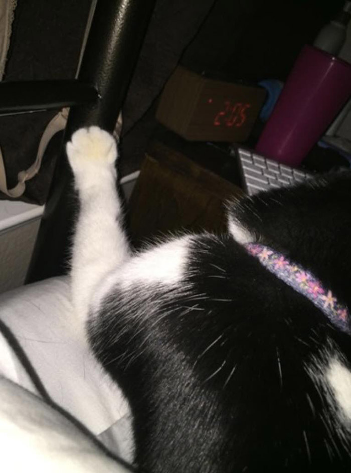 And when an object is too far for her to reach…she just stretches out a hind leg to confirm her possession!