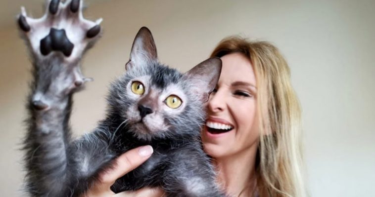 One one really believes that the kitten in the video you are about to see is real. In fact, he looks like some kind of strange animal that you’ve never seen before. At a distance, you might just think that there is an ‘animal’ playing with his owner, however, when you come closer, you will realize this is a rare cat breed called a Lykoi cat.