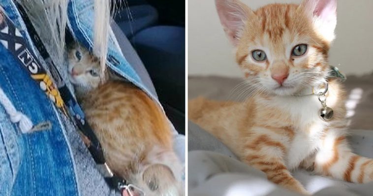 They decided to name him Atlas. They immediately for him into their car to take him away. On the way home, Atlas decided to hide inside Kelsey’s jacket, not moving or meowing.
