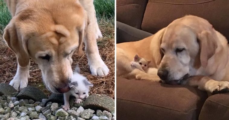 They decided to name the kitten Polly. Polly then got a much-needed bath Paxton (aka Pax), the 12-year-old resident dog, came to the kitten when she heard her squeaks.