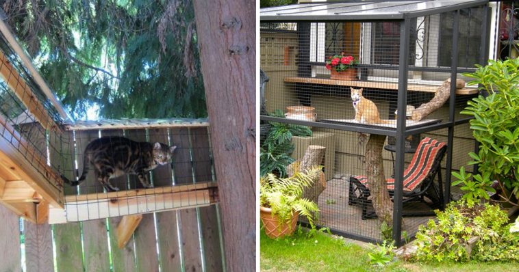 Cats spend a lot of time indoors, so when they go outdoors, they’re in heaven. But, it’s too risky to let them roam on their own outside. They could get really dirty, lost, or hurt. So, what to do? Get a “cat” for your backyard! Essentially, it’s a man cave for cats. It’s an enclosed backyard space that allows kitties to run around freely, relieve their stress on scratching posts, climb on shelves, stairs, and even a plant or two.