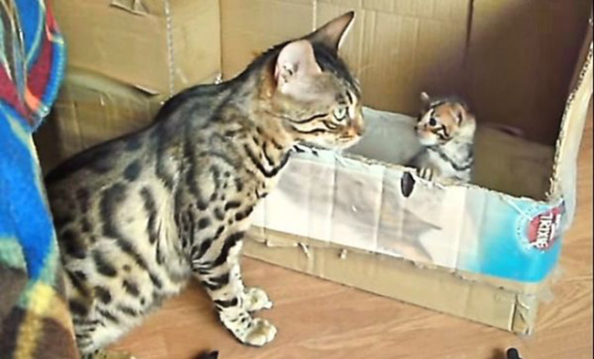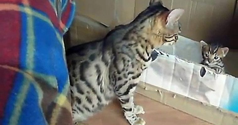 We know that cat moms are really connected to their babies. This Bengal cat mommy while checking in on her kitten starts speaking to the little one. Isn’t this just a lovely family?