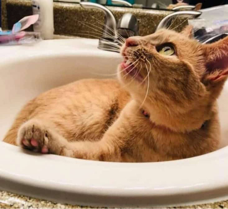 As soon as the pair was adopted, she started sneaking in the bathroom to relax in the sink. Her parents would look for hours before finding her there. They didn’t discourage the habit – instead, they found it cool and funny.