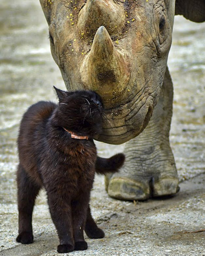 We all see cats as cold animals not able to feel love and affection, but that couldn’t be farther from the truth. As a matter of fact, cats can be all warm and cuddly – at least when they want to. They can show affection to their humans and animals as well. Apart from dogs, cats seem to have a special place in their heart for rhinos – at least that’s the case with this bunch.