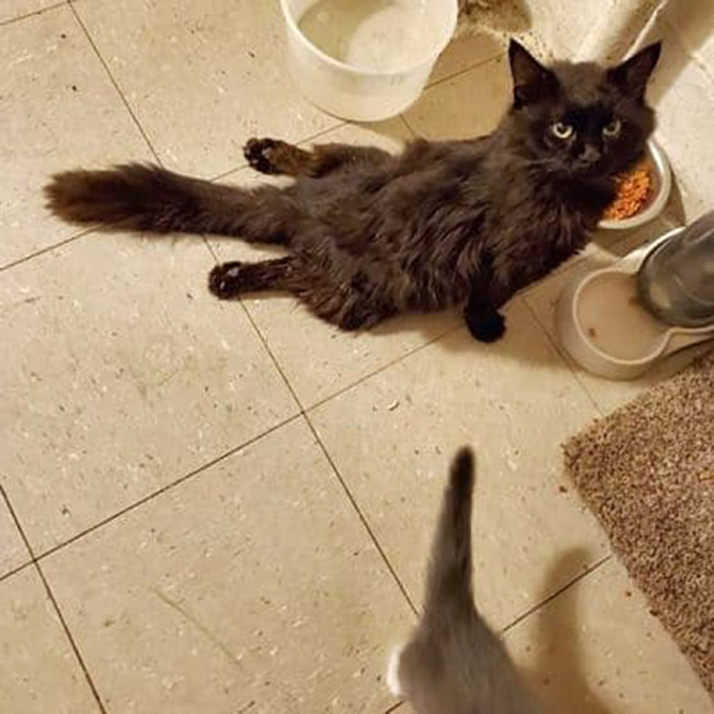 Alex, as it turns out, wasn’t in any pain. The fur on his hind legs was scrapped, so he must have dragged himself a long way. He was quite skinny as well and couldn’t control his bladder. Obviously tired, the cat ate and fell asleep.