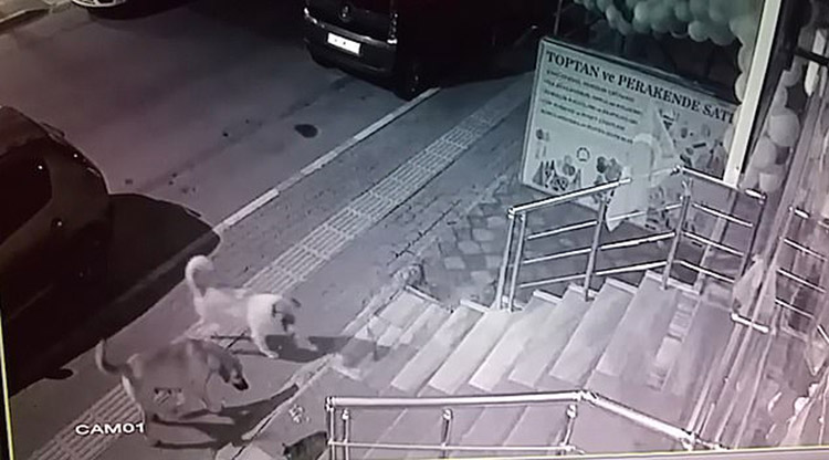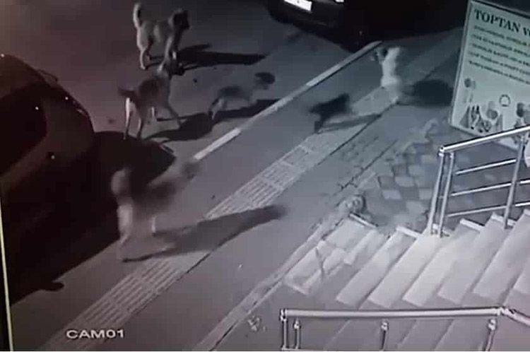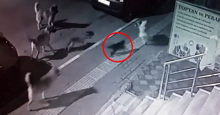 You are about to see the incredible moment a brave cat takes on a pack of six dogs and wins. This fearless feline truly defended her corner as the first two dogs walked up and started sniffing at her on some steps in Turkey.