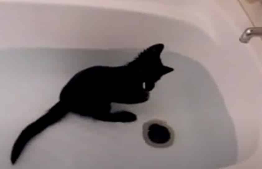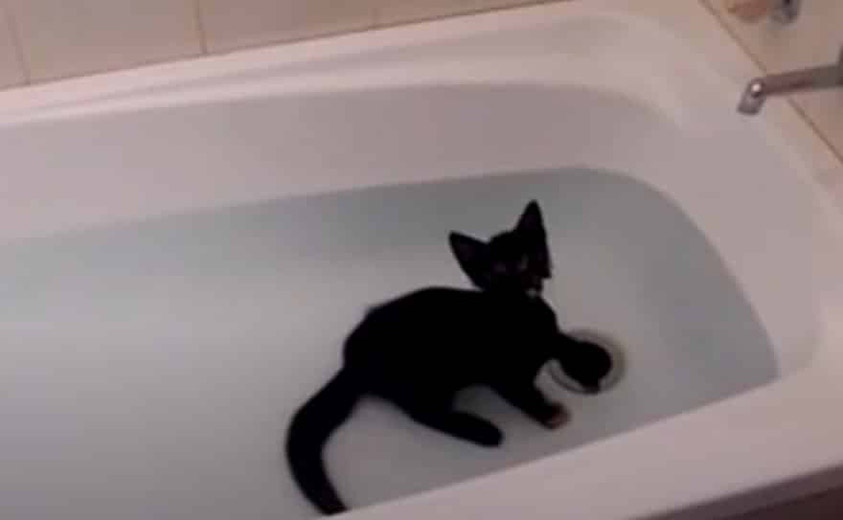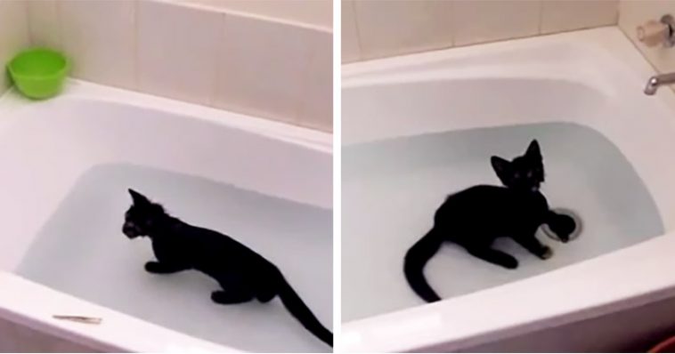 Most of us cat people are used to cats who don’t even like to get wet let alone be given a bath. The cute little furry in the video you are about to see below takes cats and water to a whole new level.