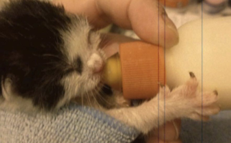 Then the rescue center got a call, there was a litter of four orphaned black and white kittens without a mother. This could be just what Mickey needed.