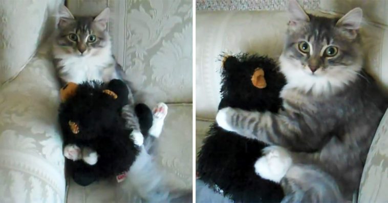 After seeing this kitty’s love for the stuffed toy, maybe people will start believing that cats are not mean and selfish. They actually care.