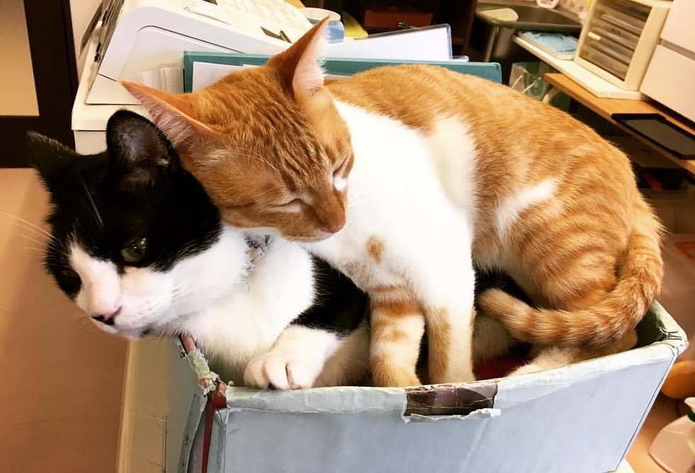 These rescue cats also enjoy lending a helping paw, wherever they go.