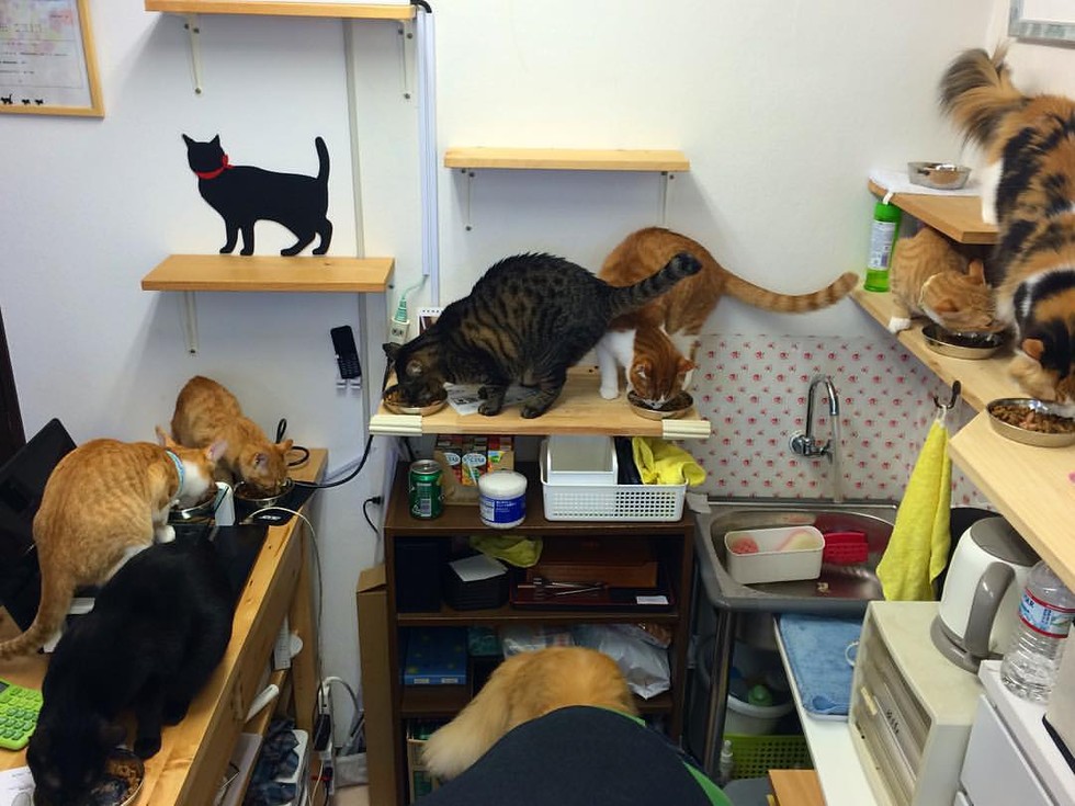 Two years ago, Bob the cat began managing the little cafe. Now they’ve welcomed many new feline staff.