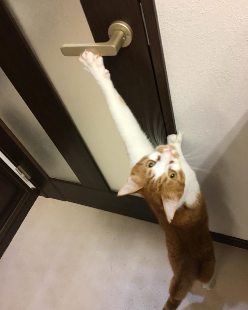 Rai is responsible for all the doors at the cafe. He can open and close them like a pro.
