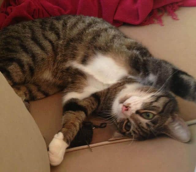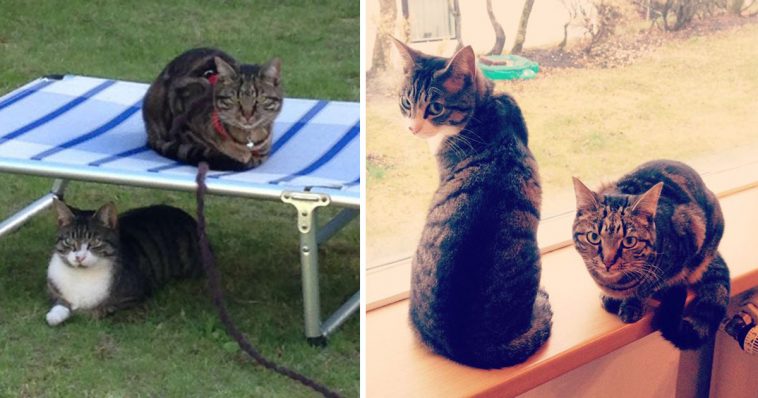 This story began when a neighbor cat came to the porch of a home while Lancelot the tabby was out with his human for some play time. They seemed to become friends instantly. Since then, the neighbor’s cat has never stopped coming back.