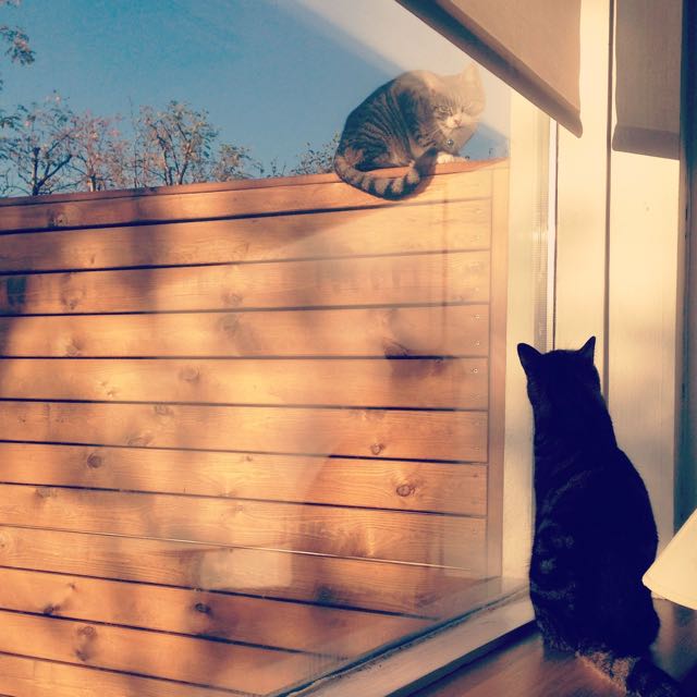 “WITHOUT FAIL, NEIGHBOR CAT COMES TO OUR BACK DOOR EVERY DAY AND MEOWS TO COME IN AND PLAY WITH LANCELOT. THEY EITHER RUN AROUND THE HOUSE WRESTLING, HANG OUT ON THE WINDOW SILL, OR TAKE NAPS. AFTER A COUPLE OF HOURS, NEIGHBOR CAT MEOWS AT THE DOOR AGAIN AND GOES HOME.”