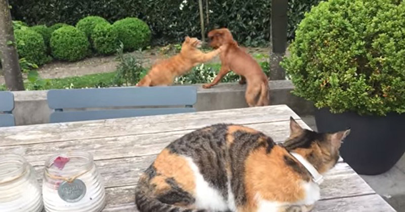 So, cat’s and dogs aren’t meant to get along? Well, it appears no one, not even another cat is going to mess around with this pooch!