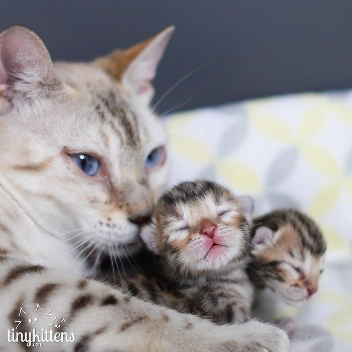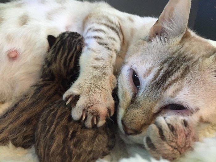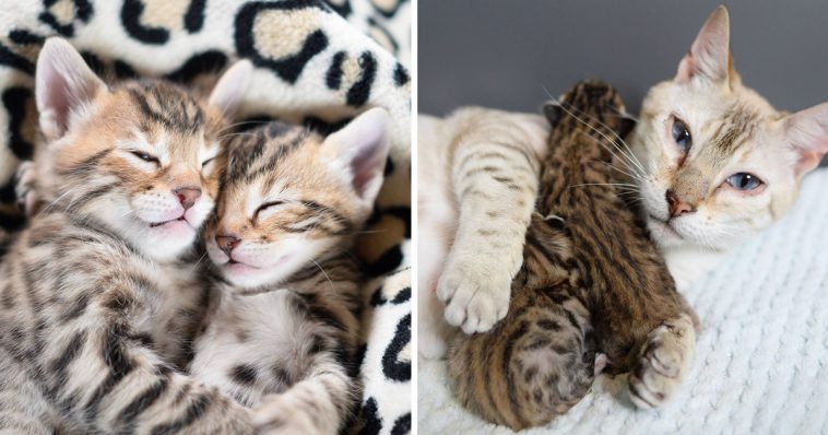 Back at the time, the sweet Bengal showed many signs of miscarriage, however, the incredible mama cat pulled through and gave birth to two beautiful babies.