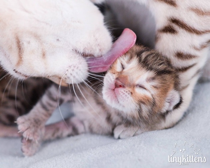 She worked tirelessly around the clock both nursing and caring for them. The protective mama cat literally showered her babies with so much love that it was simply inspiring to watch.