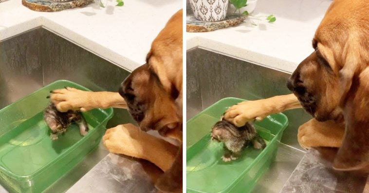 Owned by Stephanie Vice, a veterinary technician, Ruby Jane often fosters kittens in Lakeland. She’s been doing a great job too, helping the little critters overcome various troubles. In the latest photoshoot, she’s helped a 5-week old rescued kitten called Bondie during bathtime, once again proving that not all big dogs are tough and scary.