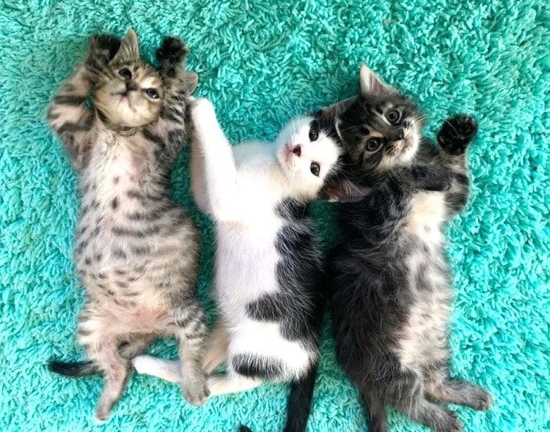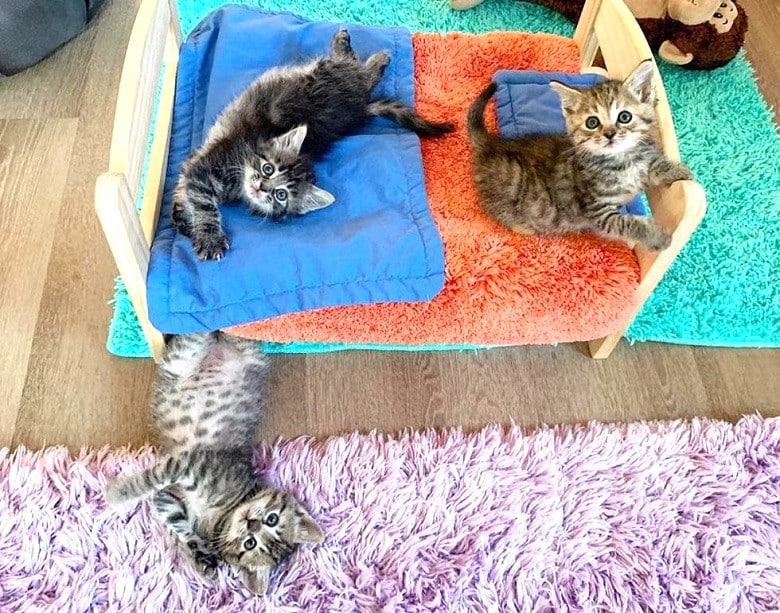 A few weeks before their arrival, a cat named Bo was found without his mom. He needed a lot of care since he was scared and only pulled through with the help of Sarah Kelly. Once Bo was out of the woods, she thought that it would be a good idea to introduce him to the 3 orphans. It was not a good, but a great idea.