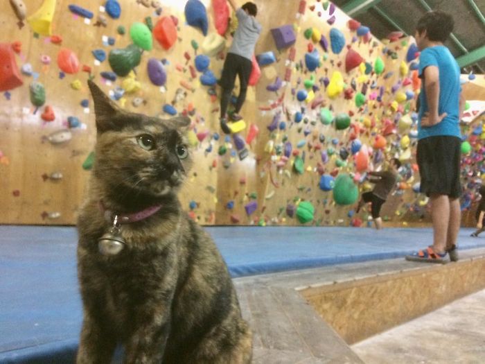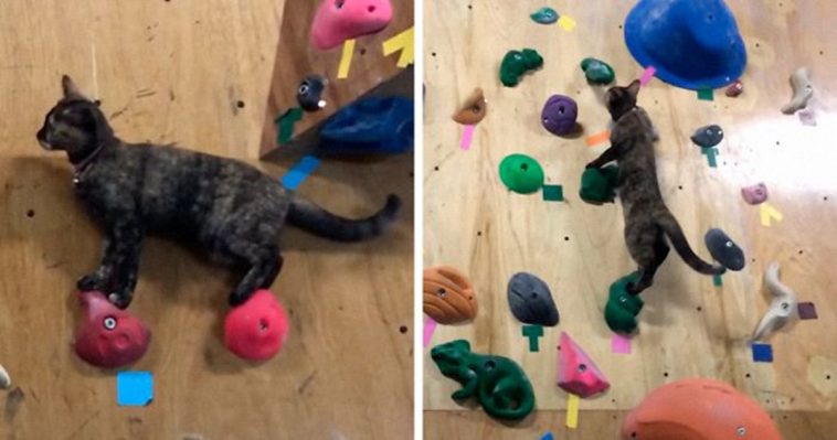 Hey, everyone, meet Lalah the cat. Lalah has quite an unusual profession – she’s a rock climber! No, we’re not kidding. The kitty has been watching her human climb walls since forever and obviously picked a few things up. If you’ve never seen a cat climb a rock wall, get ready to be amazed!