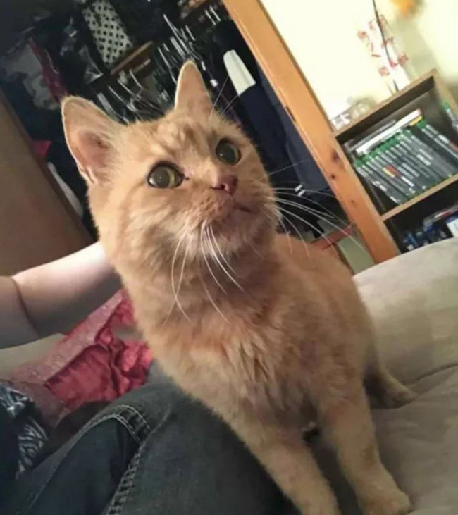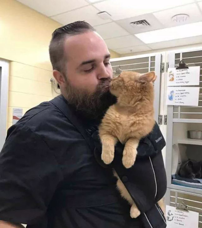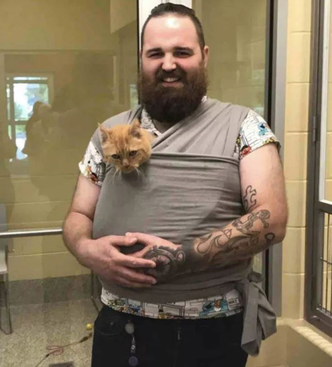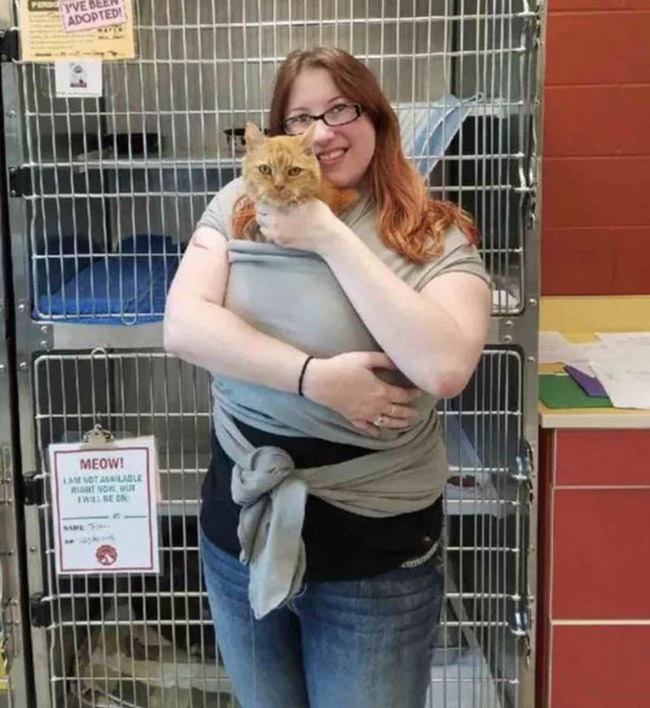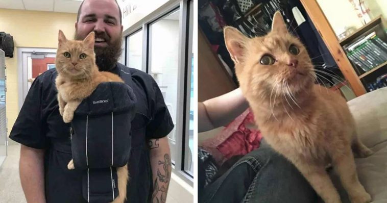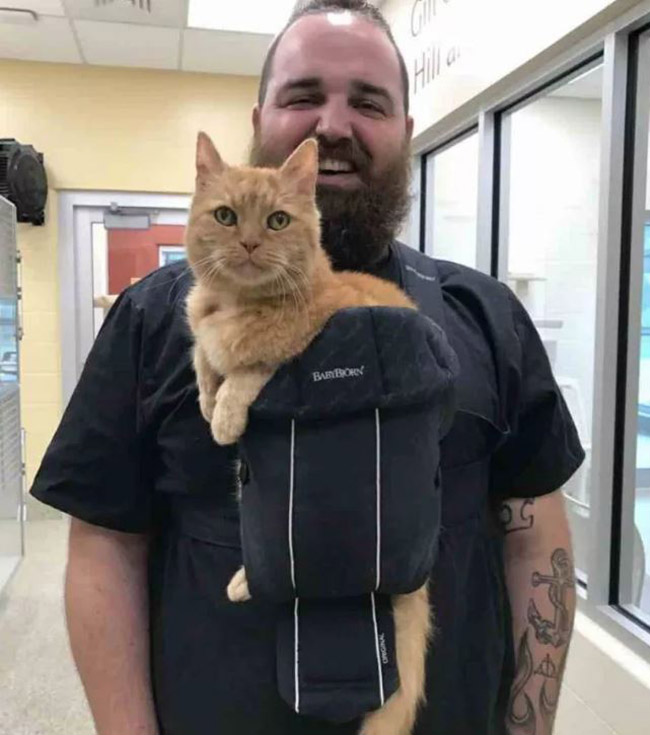 Jeana said Dougie loved being held so much, that shelter staff member Robert Weimer began carrying the cat in his child’s infant carrier.
