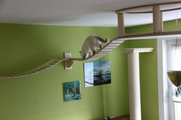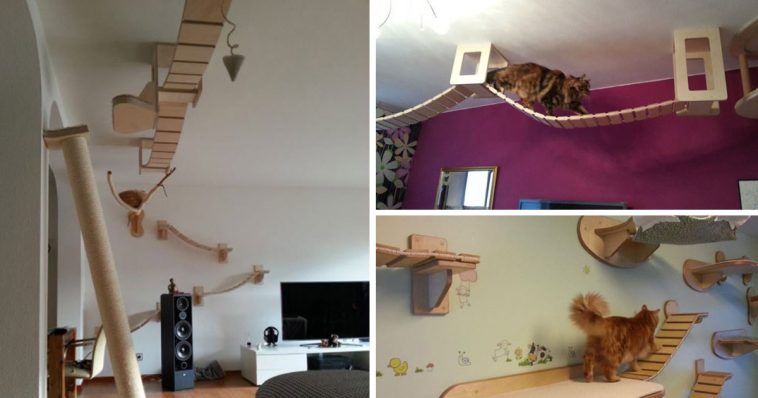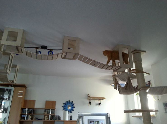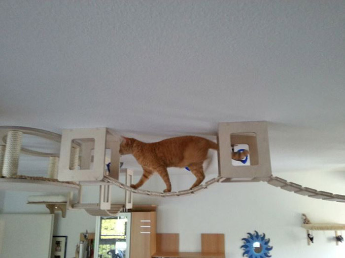 Stefan Hofmann is the founder Goldtatze, a unique design firm for one of a kind wall and ceiling furniture for our feline masters! There is an endless amount of configurations and all of them are built in Germany. Look at these breathtaking cat jungles below!