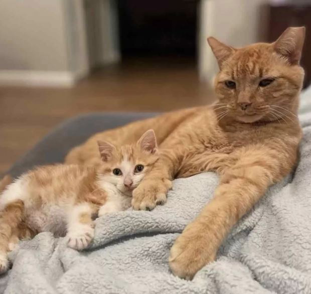 This senior kitty had never paid much attention to any of Megan’s other foster kittens, but there must’ve been something about Garfield because he became his friend and protector.