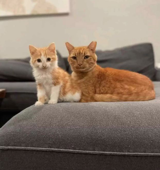 With Garfield feeling much better, Megan noticed that he was now beginning to groom Pickles, who in turn was teaching Garfield how to be a proper cat.