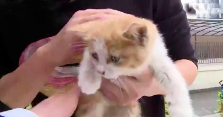 In Chengdu City, which is just Southwest of the Sichuan Province of China, a tiny kitten was trapped between glass panels with no access to food or water for three whole days.