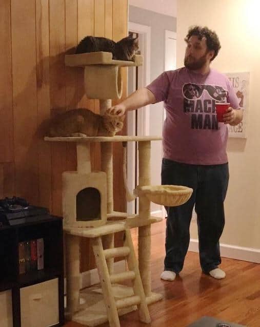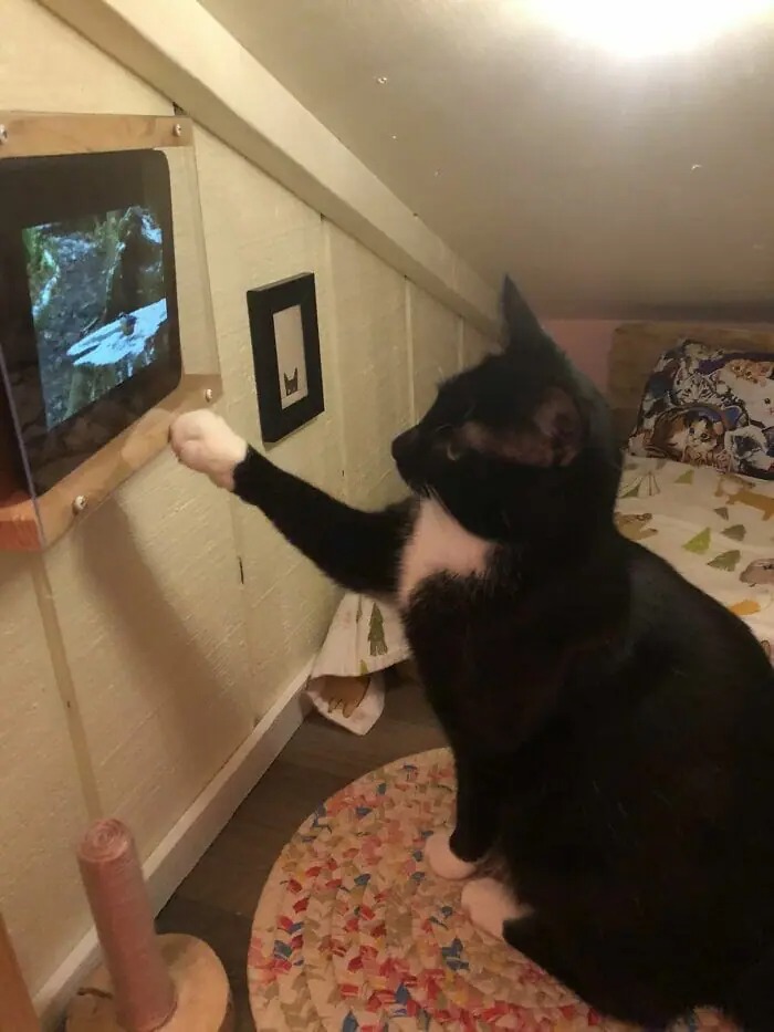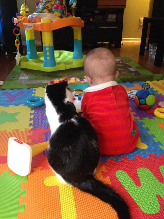 “I’m going to stay up here and watch over you like a responsible kitty-sitter. Unless you start playing with a really fun toy.”