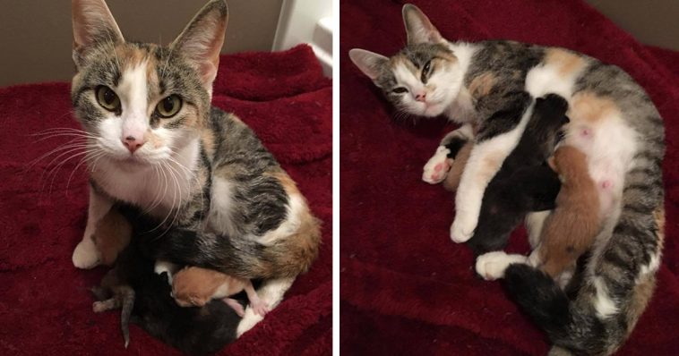 This beautiful calico was so grateful to be saved after she lost her home. Not only did her rescuers save her life, but her four babies.