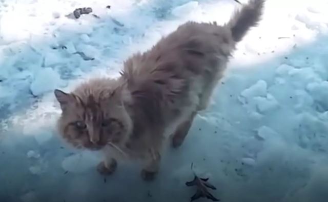 So each time Katarina put food out for him she would inch it closer and closer to her garage which was heated. Eventually he was eating his food inside and one day she just slammed the door shut. That was it, Scurvy was inside and safe from the cold.