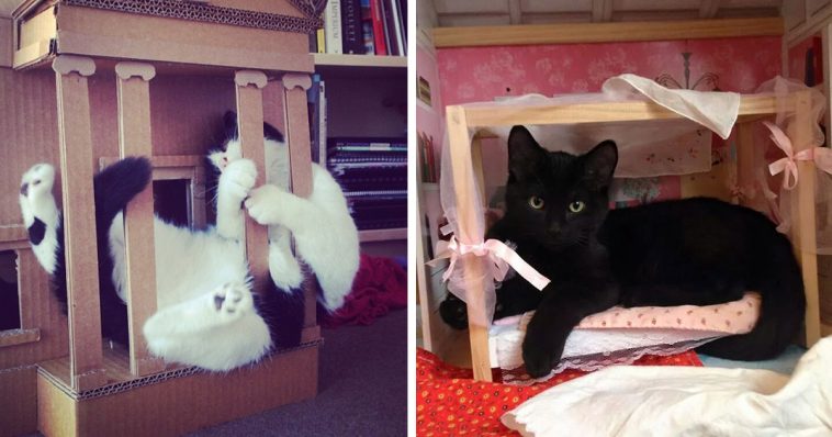Maybe dollhouses for cats, are the next best thing after cardboard boxes. Share with friends!