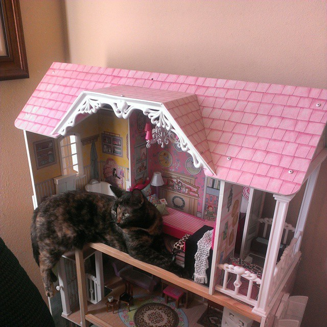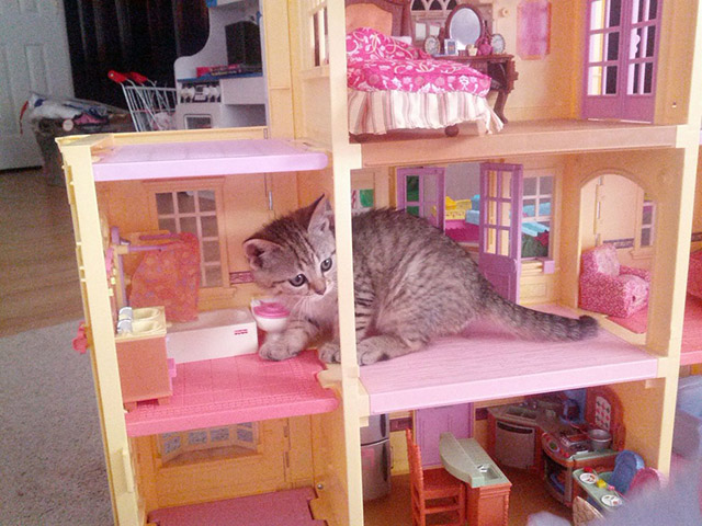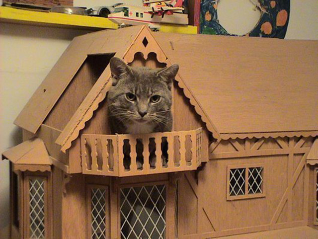 Now, that the holidays have come to a close, and little kids everywhere have received their new toys (specifically those who received dollhouses), you may want to keep an eye on your cat. You see, cats have this thing about breaking into houses. Dollhouses specifically. They enjoy taking naps in the confined living room space of your child’s dollhouse, and snacking on tiny fake fixtures and furniture. So, keep an eye out, your dollhouse could be next….