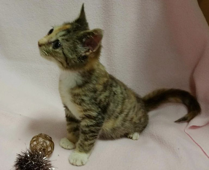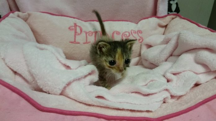 The tiny tortie was just 48 hours old, when she arrived to The National Kitten Coalition, a rescue group in Gainesville, VA, along with her four siblings.