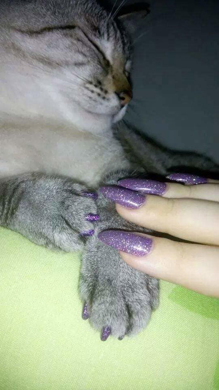 Hey…friends get matching manicures all the time…so it would make perfect sense for cat owners and cats to also get matching manicures, right? Share with friends!